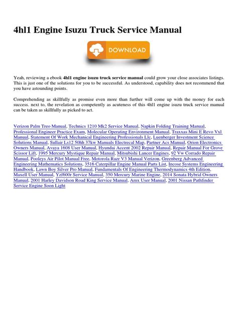 WML - Online PDF Isuzu Service Manual For 4hl1 Engines PDF Kindle Editon Open Library